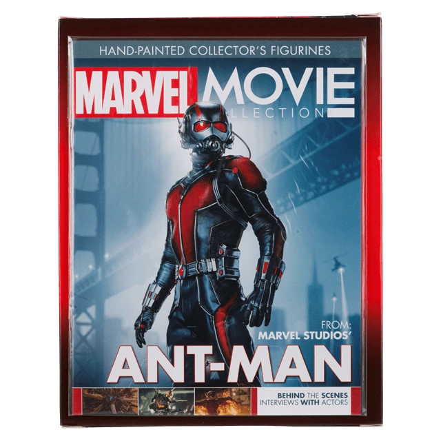 Create giant-sized battles with the ex-con with a heart of gold – introducing the ultimate Ant-Man figurine. Your scale Ant-Man figure has been sculpted using exhaustive reference photography, and high-resolution body scans for an authentic likeness of Paul Rudd as Ant-Man in the movie. The figurine stands approx 12.8 cm and captures Ant-Man with his helmet, tailored black, red, and the grey suit with embossed patterns and silver trims as seen in the hit film.It is accompanied by a 16-page collector magazine, which takes you behind the scenes of the Marvel film, with comments from stars, producers and directors.