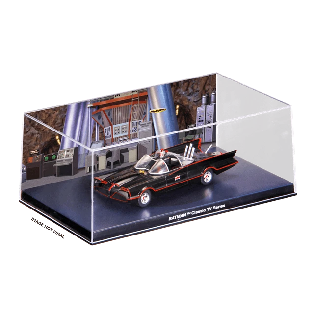 When it burst onto the small screen, the Batmobile from the legendary, Batmobile of the 1966 TV series was unlike any car before it. Parked in the show’s world-famous Batcave, the collector’s model features a detailed 3D lenticular backdrop. This Batmobile includes bullet-proof reinforced Plexiglas with high-impact resistant paint on the outer layer of the car. 195 x 80 x 115mm. 14+ collector figure.