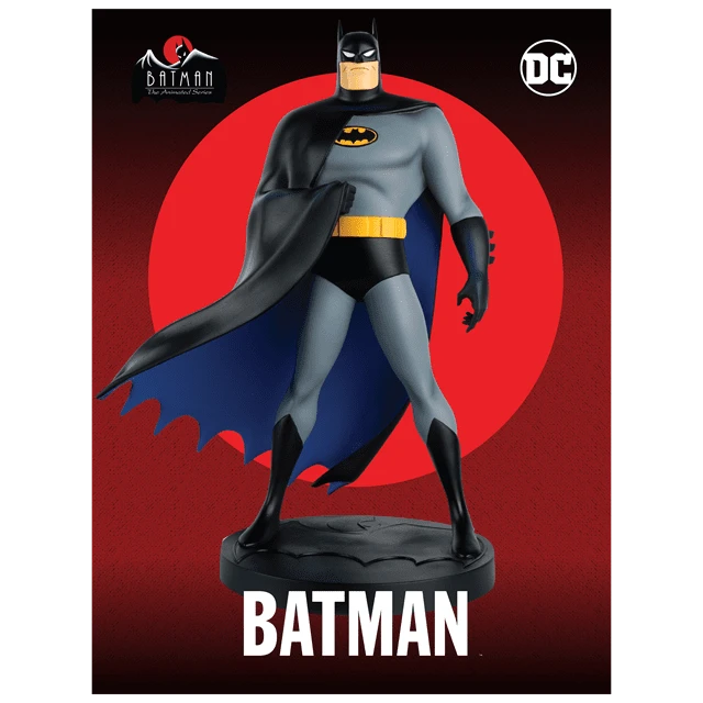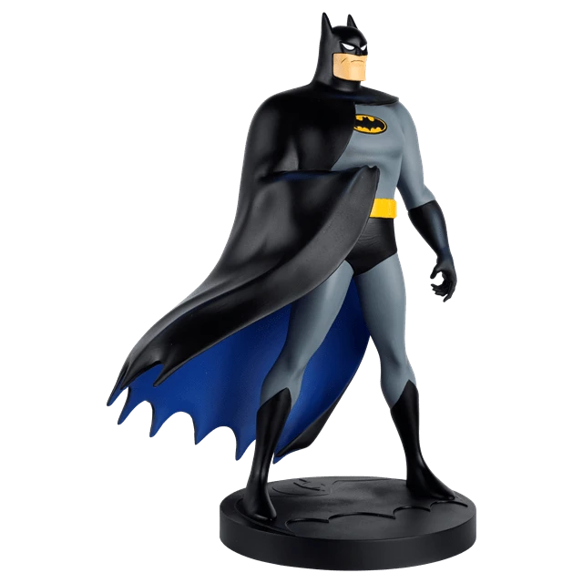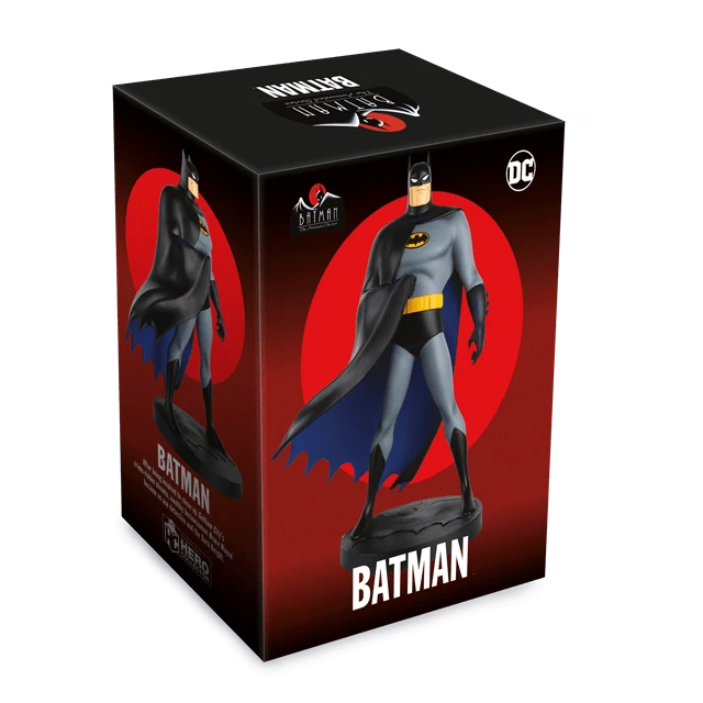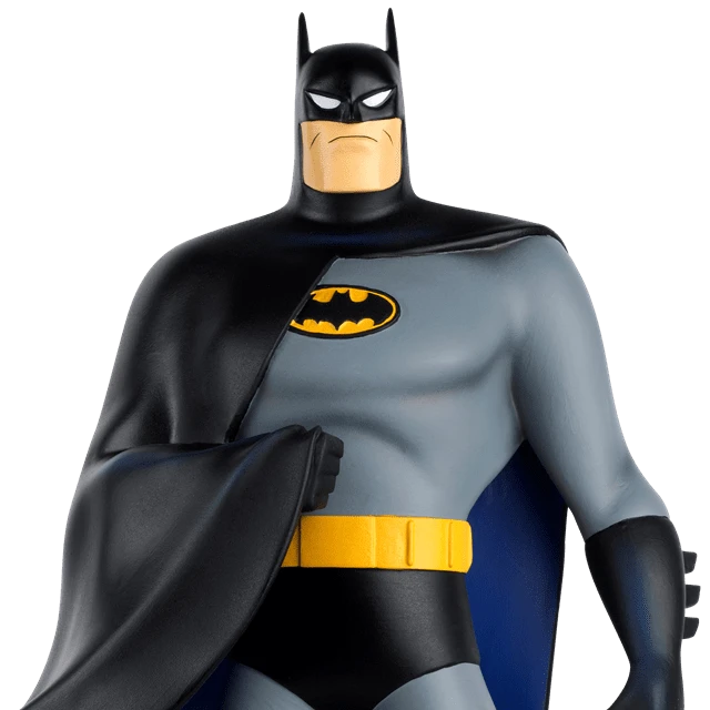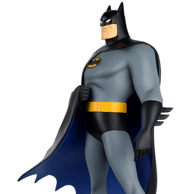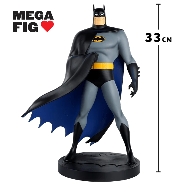 Inspired by the 1992 animated series, this incredible Batman MEGA statue stands at an impressive 33 cm tall – ready to exact swift justice! Based on the designs of Bruce Timm, the figurine features Batman’s iconic grey and black Batsuit with his bat symbol across the chest, his yellow utility belt and black cowl, and his scallop-edged cape with blue lining is gently moving with the wind.This Batman figure is made from specially formulated metallic resin and comes complete in full-colour box with a 12-page magazine focusing on the tenants and tales of Gotham City. 14+ collectible statuette