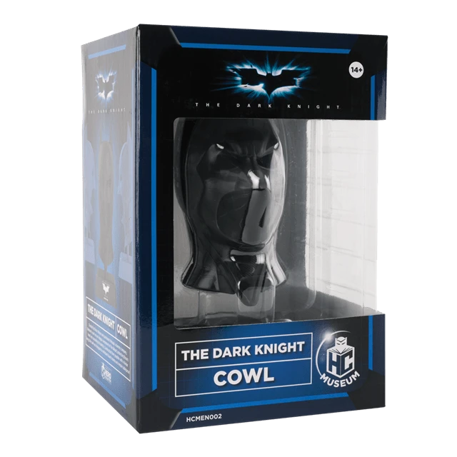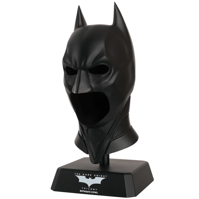 Batman Cowl Replica (The Dark Knight) stands an impressive 28cm tall on a display stand.Batman’s cowl underwent a redesign in Christopher Nolan’s The Dark Knight (2008), after Bruce Wayne encountered issues with the batsuit’s mobility.Collect iconic artifacts from Batman’s greatest stories on the silver screen! Cowls, gadgets, and more are all recreated as highly accurate, hand-painted resin models! Standing roughly 22-28cm tall on a plinth stamped with their movie of origin, these replicas would fit right into the Batcave’s trophy cabinet. 28cm. 14+ collector statuette.