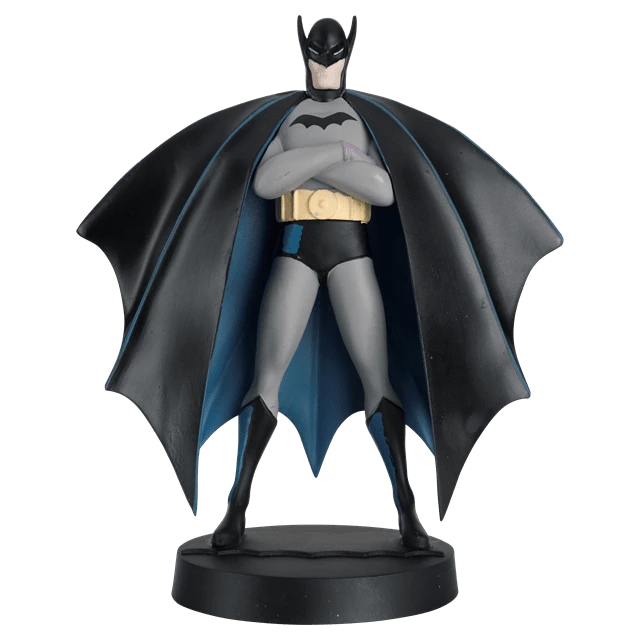 This Batman Debut 1940s 1:16 scale Figurine was inspired by Batman’s earliest appearance and represents the quintessential Dark Knight. Hand-painted for incredible detail, he is rendered wearing a classic grey suit, yellow utility belt, black cowl and cape that imitates a shape of bat wings. It reflects the Dark Knight standing atop a Gotham City rooftop as if preserving his usual lonely vigil, cloaked in darkness. This Batman Debut 1940s Figurine comes with a 12-page magazine looking at the original concepts and gadgets of the character, as well as the beginnings of the Gotham City.