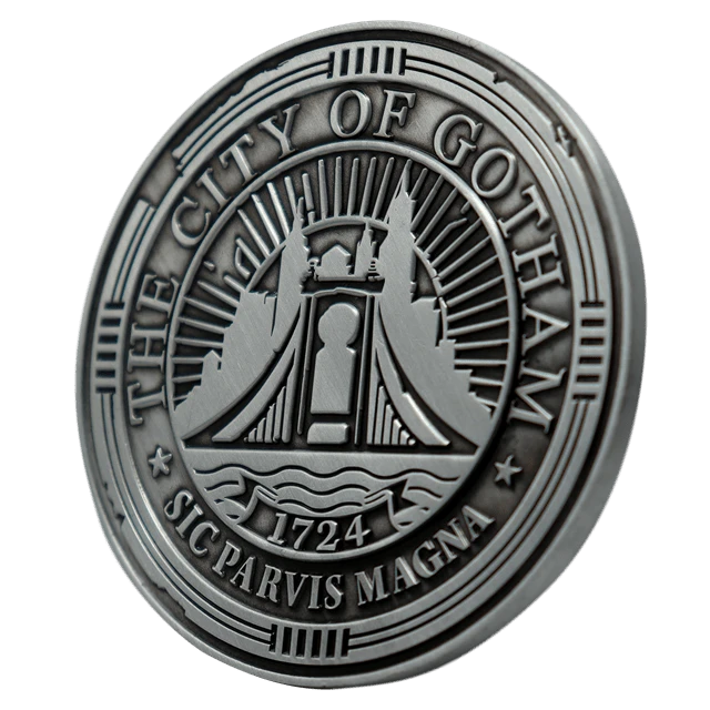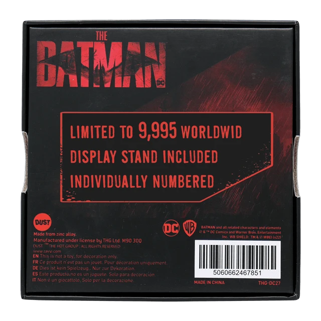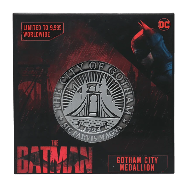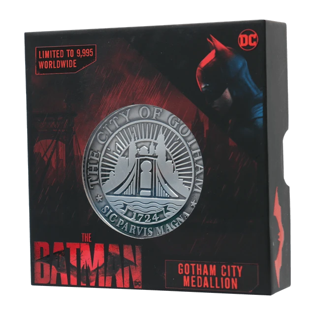 This distressed Gotham City medallion is heavily embossed medallion and is limited to 9,995 worldwide, individually numbered and supplied with a display stand within its presentation box.