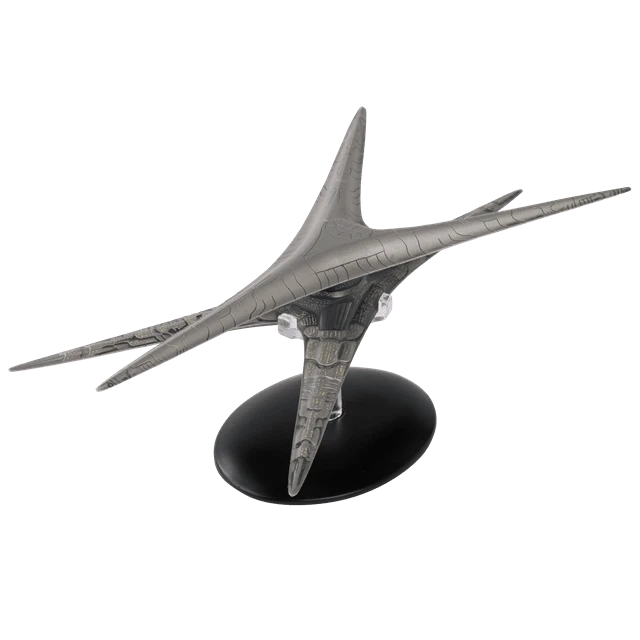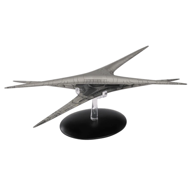 This Battlestar Galactica Modern Basestar Ship measures 27cm long and is brought to life in die-cast metal and high-quality ABS materials. It captures the ship’s sleek but deadly angular design and small details like fuel lines, engine burn and its modern silver paintwork. The ship comes complete with a 16-page collector’s magazine providing an in-depth profile, exclusive behind the scenes articles, original design sketches and an interview with the series developer, Ronald D. Moore.