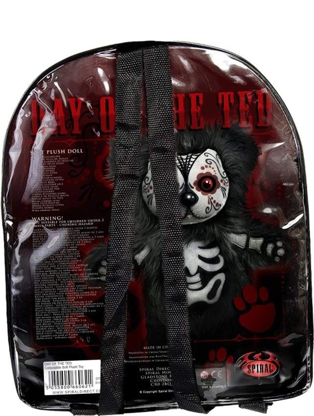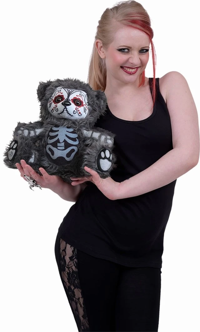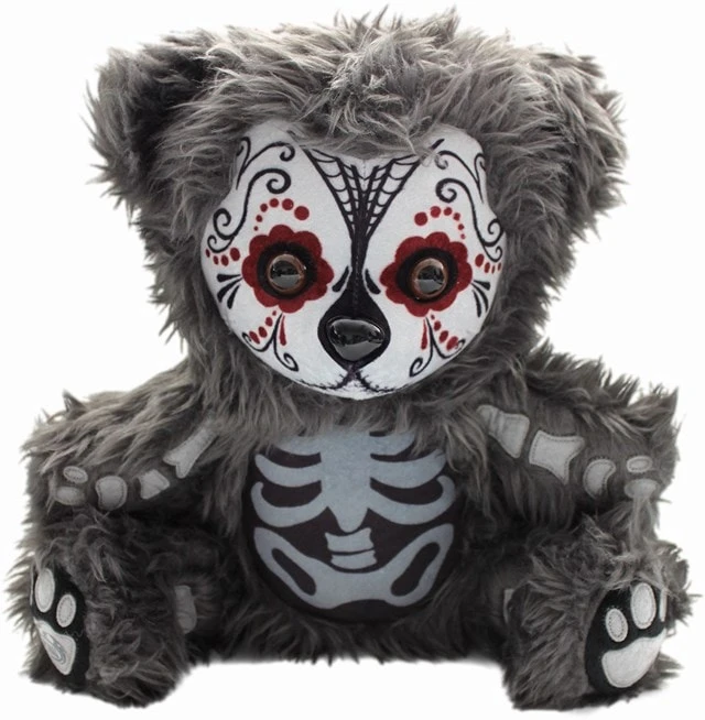 On a nighter when the souls of our nearest and dearest departed are remembered and celebrated, faces are painted and music is played to express our love. This beautiful plush bear is decorated with a spooky sugar skull face and skeletal shapes in her fur to commemorate Dia de Los Muertos! Collectable Soft Plush Toy is made of 100% Polyester, not suitable for babies and toddlers.