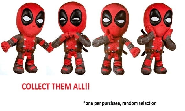 Deadpool has fast become one of Marvel’s most iconic and favourite movie characters and now you can own your very own miniature Deadpool plush toy. These plush toys are made using the highest quality fabrics and each measure 12″ (30cm) in height. There are four Deadpool character plush toys to collect, each with a different and highly entertainingly recognisable pose.One unit and style will be selected randomly with purchase. Please note, we cannot accept requests for specific variants of this item and they are not sold separately.