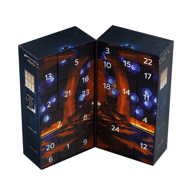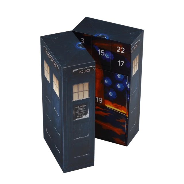 A must-have seasonal treat for any Doctor Who fan, discover the Doctor Who TARDIS Advent Calendar! Celebrate every day of the holiday season in true Doctor Who style, with this spectacular advent calendar! Designed in the shape of the Doctor’s iconic blue time machine, the TARDIS, this luxury calendar contains 24 high-quality festive gifts and accessories from across time and space, such as gorgeous coasters with artwork inspired by famous Doctor Who episodes and even a Sontaran egg cup for that festive breakfast! By fans, for fans – each day’s gift comes with a festive note detailing the story and trivia behind it, both wrapped together in branded tissue paper. The Doctor Who TARDIS Advent Calendar is the perfect pre-Christmas gift for any Doctor Who fan – so packed with presents, it must be bigger on the inside!