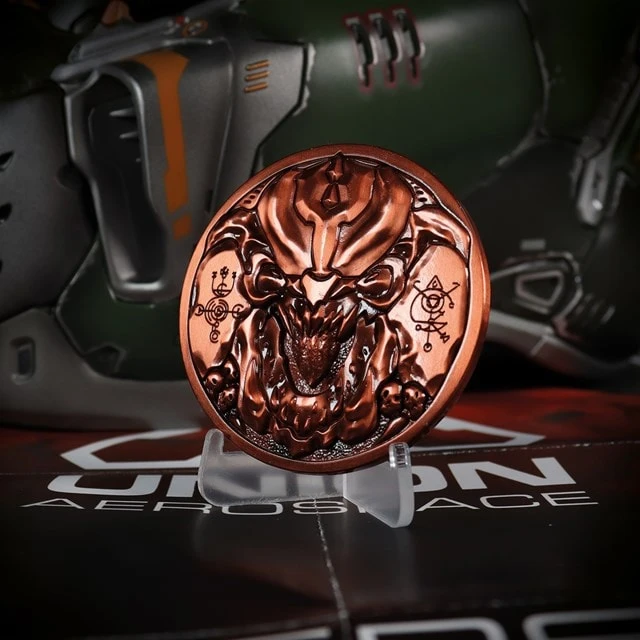 Limited to 5,000 worldwide, this heavily embossed metal medallion features a ‘level up’ creature from the Doom game. Supplied with a display stand within it’s presentation case.