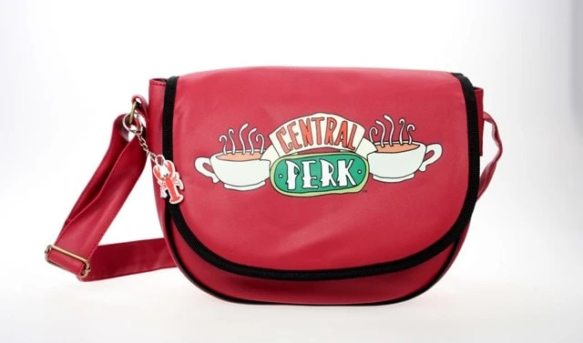 Official Licensed Friends Merchandise. Spacious, Stylish, Wipeable Faux Red Leather Pleather Type Material With The Instantly Recognisable Central Perk Coffee Shop Logo. Features A Zipped Main Compartment with Side Pouch & Adjustable Strap PLUS BONUS Lobster Keyring. Measures Approx. 29 x 21 x 8cms. Great Design And A Perfect Practical Gift For The Friends Fan.
