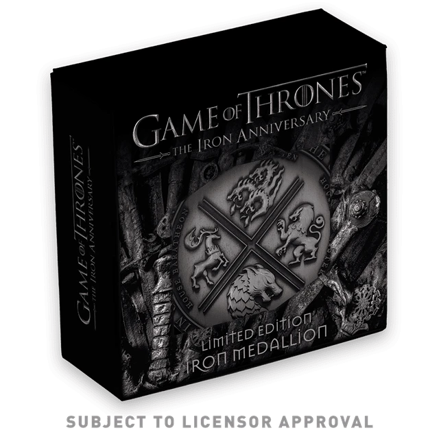 Created to celebrate the 10th anniversary of Game of Thrones, this IRON anniversary piece is heavily embossed, limited to 2,011 worldwide (the year of release) and supplied with a display stand within it’s presentation box.