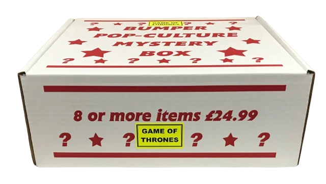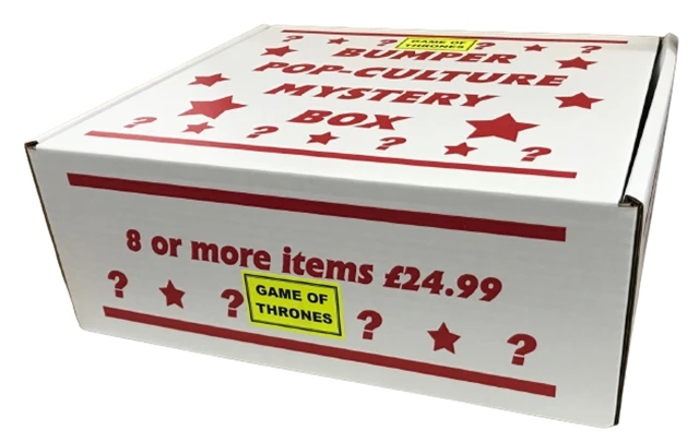 Combine a love of pop culture with the element of surprise with this Mystery Box, filled with officially licensed merchandise. This Mystery box contains up to 5 random items across wall art, drinkware and accessories. A great gift idea for a loved one or yes, yourself (we like your style!) So go ahead, find out what’s in the box! Please note that these items will be selected at random from a wide variety of product types.Unfortunately, due to the nature of the Mystery Box we are unable to swap individual items that are received or the Mystery Box, unless there is a fault with the product. Includes: Card box filled with minimum 5 brand new pop culture products.