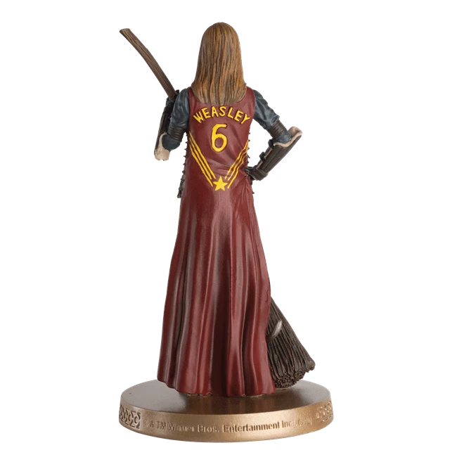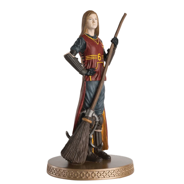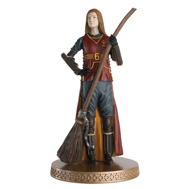 This beautiful highly detailed Ginny Weasley Figurine captures the likeness of actress Bonnie Wright who portrayed the red-headed witch in the Harry Potter franchise. Dressed in the scarlet and gold colours of Gryffindor, Ginny stands confidently with her broomstick, waiting for the game to begin. The figurine was meticulously hand-painted to capture all the little details of the Chaser’s outfit including her name and number on her back. Product Features: Designed in the likeness of the movie character played by Bonnie Wright in Harry Potter and the Half-Blood Prince, Specially hand-painted for incredible detail, 1:16 scale, approximately 11cm tall. This figurine is accompanied by a full-colour glossy collector’s guide looking at Ginny’s key moments, relive a terrifying moment that saw the destruction of the Burrow and learn how to become a member of the Slug Club. Made from hand-painted resin.