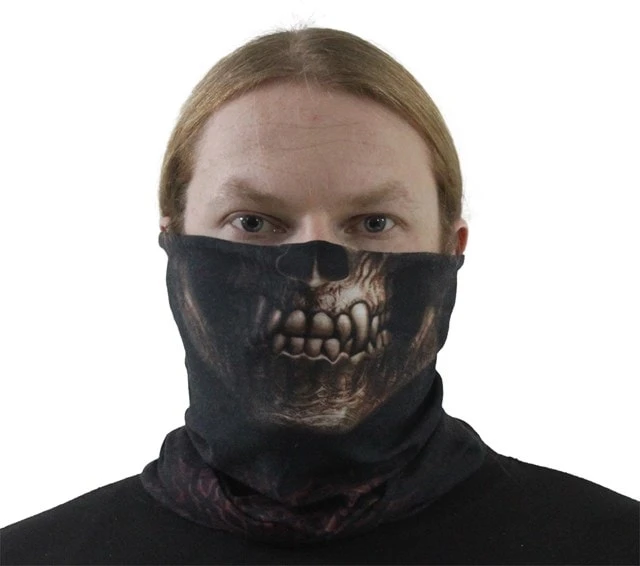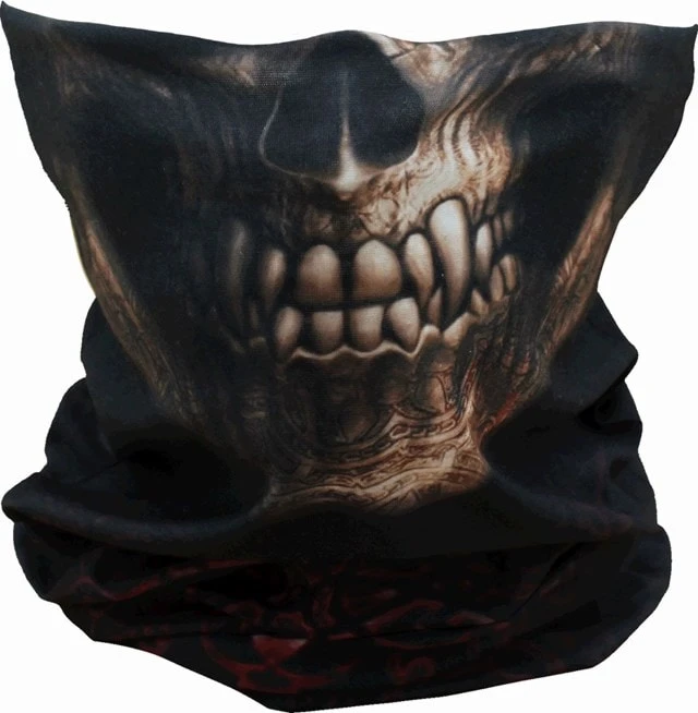 Lurking in the shadows, this gothic skull emerges, illuminated in the darkness from it’s own brooding flame. This multifunctional face covering is made of 100% Soft and Stretchy Microfibre Polyester, 50cm x 25cm using high quality breathable microfibre that protects against the Heat (Moisture Wicking); Cold ; Wind; Dust and Insects. This seemless Loop Scarf can be used as a Face Mask; Balaclava; Headband; Wristband; Beanie and lots more. Suitable for climbing, running, cycling, motorcycling , boating, skating, skiing, surfing or just raving!