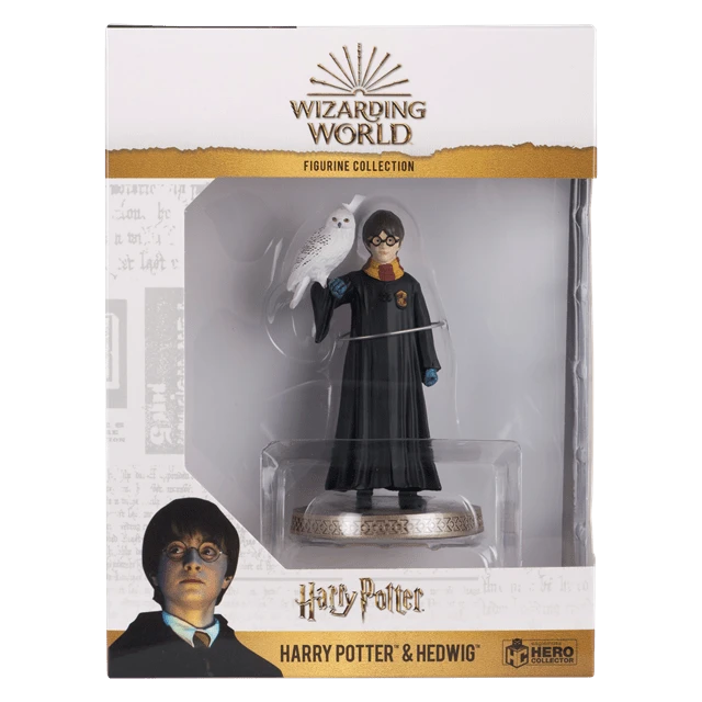 Travel to Hogwarts for the first time with the young wizard “Harry and his owl Hedwig” from our magical “Wizarding World Figurine Collection!” This Harry Potter with Hedwig 1:16 scale Figurine is from “Harry Potter and the Philosopher’s Stone”. He is wearing his winter Gryffindor house cloak, scarf and gloves. Hedwig perches proudly on his outstretched arm, preparing to take flight. Sold in Wizarding World themed window box, this figurine is accompanied by a full-colour collector’s guide looking at Harry’s key moments in Harry Potter franchise, plus learn more about the animal companions at Hogwarts and relive a memorable scene with Madam Hooch from Harry Potter and the Philosopher’s Stone.