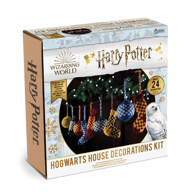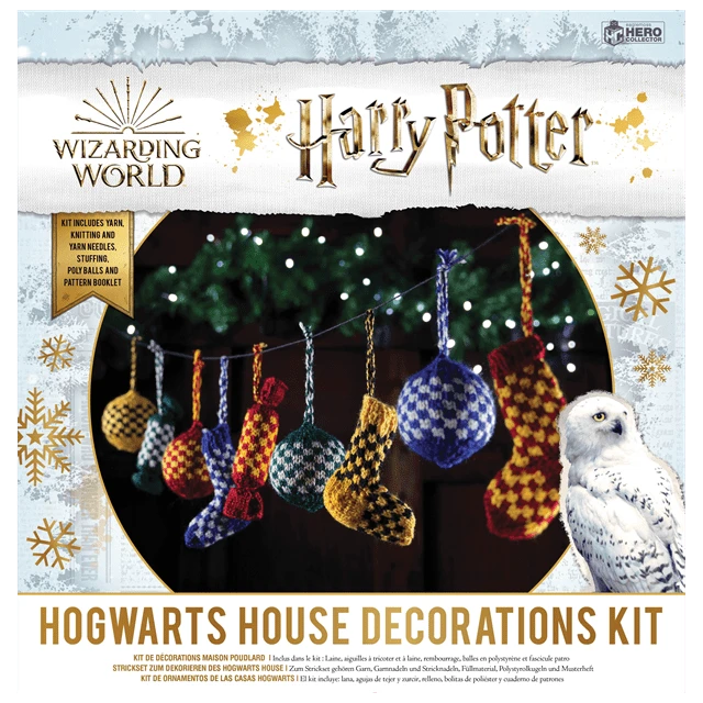 Bring the feeling of Hogwarts festivities home with some truly magical handicrafts! This knit kit contains all the materials and instructions fans need to create their very own knitted Hogwarts Christmas decorations – and deck the halls with boughs of Harry! This box contains enough to make 24 Christmas decorations. These official Wizarding World knitting kits come stocked with all the materials, patterns, and instructions fans need to weave a little magic into their lives. Contents/Materials: Acrylic Yarn Bundles, 3.5mm Knitting Needles (x2), Instruction/Pattern Booklet. 300mm x 300mm x 105mm.