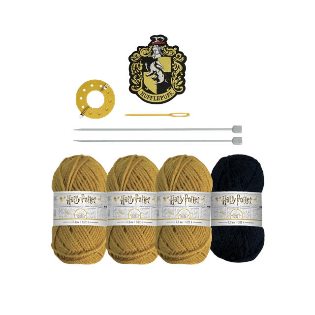 Inspired by the famous Hogwarts Houses, this Hufflepuff Bobble Hat Kit allows fans to show their house pride by knitting a beanie hat in their chosen house colours of black and yellow. Comes with a Hogwarts House Patch. These official Wizarding World knitting kits come stocked with all the materials, patterns, and instructions fans need to weave a little magic into their lives – and create Hogwarts-themed accessories!Contents/Materials: Acrylic Yarn Bundles, 3.5mm Knitting Needles (x2), House Patch, Instruction/Pattern Booklet. 300mm x 150mm x 105mm.