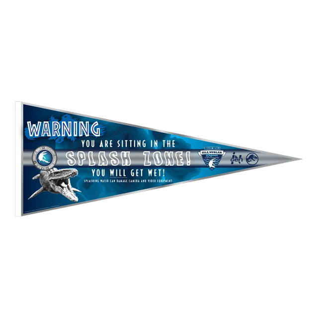 A premium felt pennant measuing 30×12 inches, just like the banners at the theme park. Supplied rolled in a display tube.