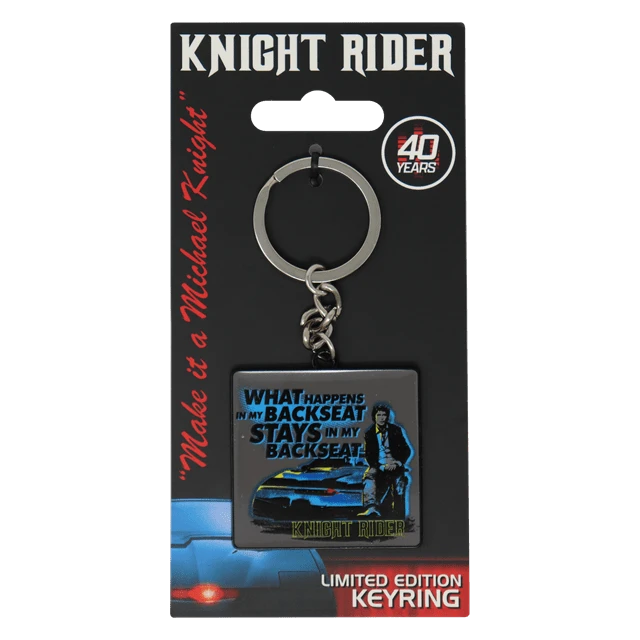 Celebrate the 40th anniversary of Knight Rider with this tongue in cheek keyring created by Fanattik, metal, limited to 9,995 worldwide and individually numbered.