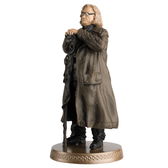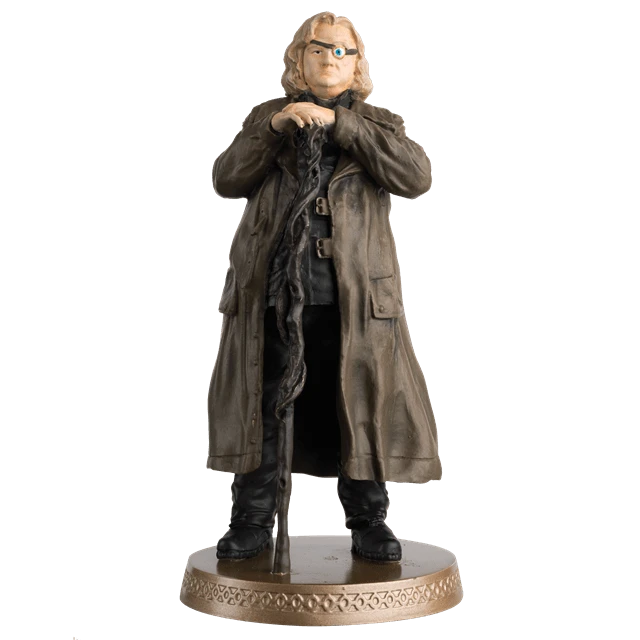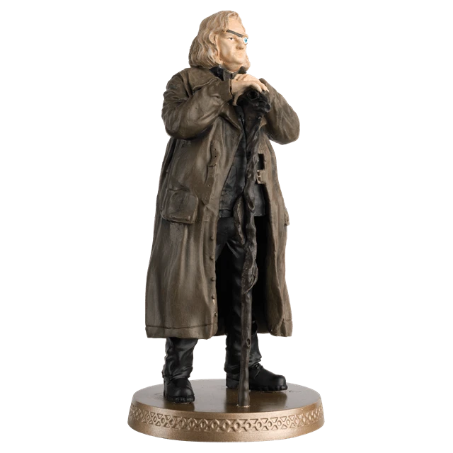 This metallic resin 1:16 scale figurine of Alastor “Mad-Eye” Moody captures Brendan Gleeson wearing his heavy brown overcoat with his arms clasped over his wooden, ram-headed staff. However, the staff is with a secret – it is a powerful weapon that cast spells and make magical buildings appear or send enemies flying backwards. Product Features: Hand-painted for incredible detail, 1:16 scale, approximately 13cm tall, Comes packaged in an illustrated Harry Potter themed window box. This Alastor “Mad-Eye” Moody Figurine comes with a full-colour glossy magazine. The magazine looks at memorable moments of Alastor “Mad-Eye” Moody, a snapshot of exclusive scenes from Harry Potter and The Order of Phoenix plus a lesson from the Defence Against the Dark Arts teacher. Made from hand-painted resin.