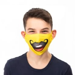 Protective Reusable Washable Unisex face mask. Emoji Masks are designed to “Share your Smile”! Iconic Emoji mouths will break down barriers that a plain mask puts up and spread some cheer! PROTECTIVE ; Against droplets from coughing, sneezing, talk, dust and pollution. REUSABLE & WASHABLE ; For a more sustainable, environmental and economic solution. COMFORTABLE FIT; Adjustable nose strip and ear straps for comfort and to create a good seal around the face. 2 LAYER COTTON; 2 layer tight weave protective Cotton and fabric for comfortable breathing. Woven pocket for PM filters for those most vulnerable. UNISEX fit; 12+year upwards.