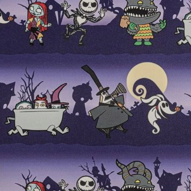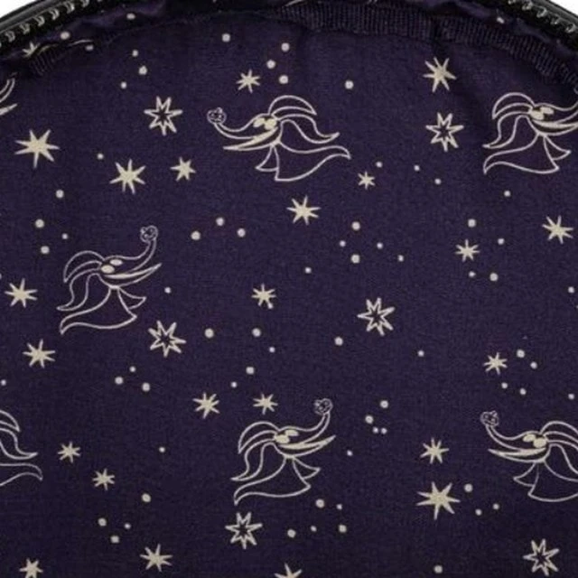 What’s this? What’s this? A totally enchanting, most magical Nightmare Before Christmas bag starring all the key characters from Tim Burton’s stop motion masterpiece. The Mayor, Sally, Jack, Lock, Shock, Barrel, Zero and Oogie Boogie all appear on this suitably spooky purple all over print. From Loungefly, the label behind the quirkiest, coolest Disney accessories! Made from premium faux saffiano leather. Exterior side pouch pockets and zipped front pocket. Adjustable padded shoulder straps and hanging loop. Interior lined with matching themed fabric. Vegan friendly. W: 23cm x H:27cm x D:11.5cm (approx).