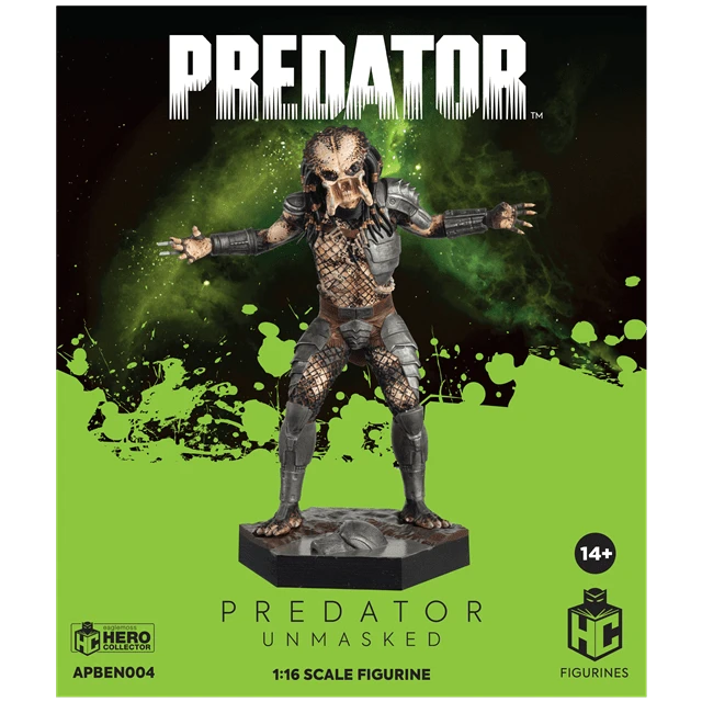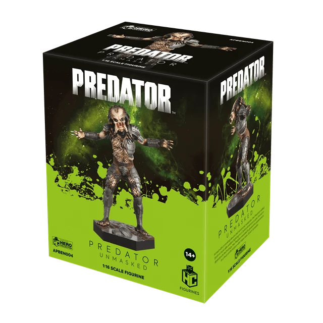 The Predator was the titular monster in the original 1987 Arnold Schwarzenegger blockbuster, Predator. This figurine captures the Predator’s final challenge to Dutch, its mask discarded as it roars with flared mandibles. Standing at 15cm tall, the Unmasked Predator figurine is a hand-painted replica of the sci-fi icon, designed using materials supplied straight from the film studio. The Predator’s distinctive mandible jaws, mottled skin pattern, and tentacle dreadlocks are on full display here – for most prey, it’d be the last thing they’d ever see 14.8cm. 14+ collector figure.