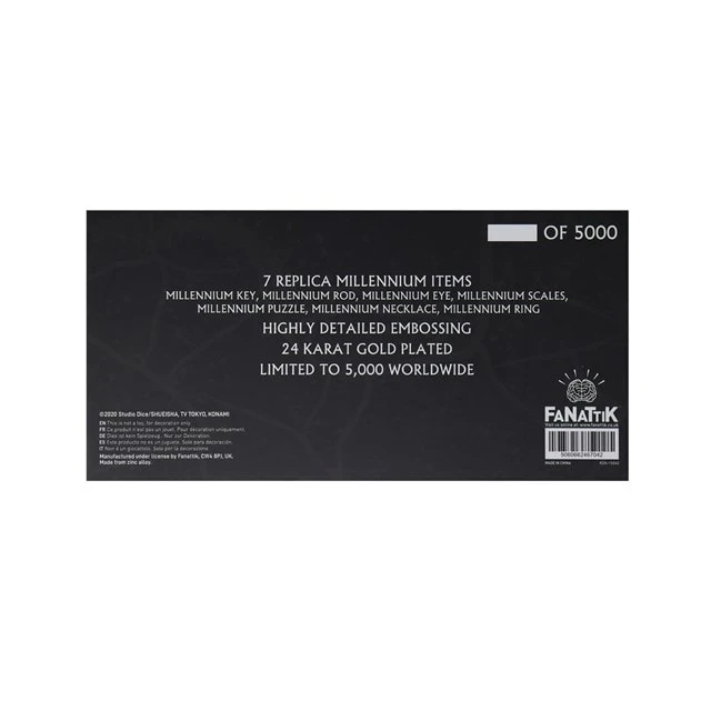 This premium replcia set contains seven 24k gold plated pieces including the Millenium Key, Rod, Eye, Scales, Puzzle, neckalce and ring. The set is limited to only 5000 worldwide and each presentation case is individually numbered.