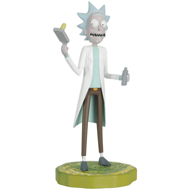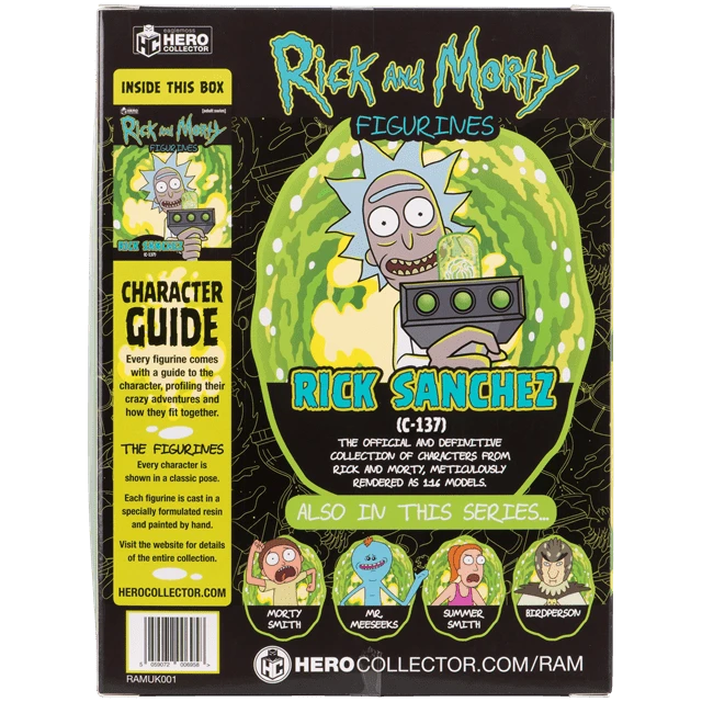 This highly-detailed Rick Sanchez 1:16 scale figurine perfectly captures a foul-mouthed super-scientist with a heart of depleted uranium, clad in his signature lab coat with a high-tech portal gun (and a somewhat less advanced hip flask). Our hand-painted, Rick stands atop a portal-themed display base at almost 13 cm tall. Accompanied with a 16-page illustrated magazine featuring information about your figurine and interesting facts from Rick’s life.