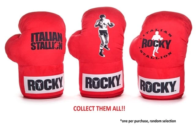 Step into the ring with these giant soft toy Rocky boxing gloves that you can wear and imagine yourself as the one and only, heavy-weight champion, The Italian Stallion himself. These bright red giant plush boxing gloves are officially licensed and feature the famous ‘Rocky’ branding on them. The gloves measure 24″ (61cm) in height. There are three styles to collect. One unit and style will be selected randomly with purchase. Please note, we cannot accept requests for specific variants of this item and they are not sold separately.