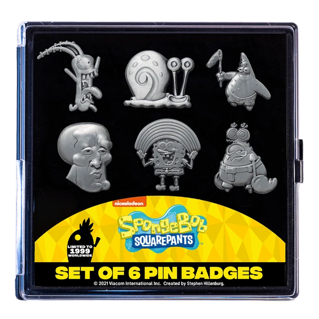 Limited to 1999 (year of the launch of SpongeBob), this set of 6 metal pin badges comes within it’s own display case.