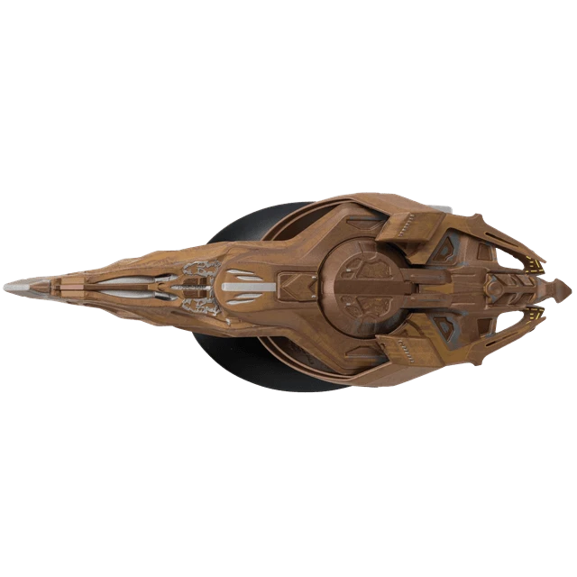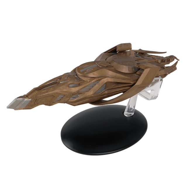 Vulcan cruisers were small, warp-capable crafts used by the Vulcans during the 23rd century. Designed for planetfall, they came to rest on a retractable landing gear, allowing for entry/exit through a door in the nose. This highly detailed die-cast Vulcan Cruiser starship model is approximately 14cm long and based directly on the original VFX models created for the show. It comes complete with a magazine that profiles the ship and explores the inside story of how it was made.