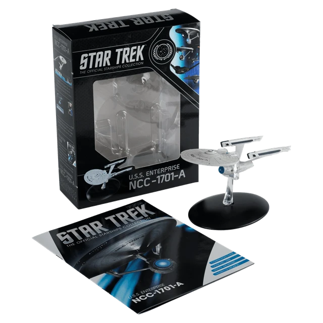 Seen in Star Trek IV: The Voyage Home this incredible vessel is recreated in die-cast, and high-quality ABS materials then intricately hand painted using references from CBS Studios own archives of designs, physical and CG models. Your U.S.S. Enterprise NCC-1701-A highly detailed diecast model comes boxed with a magazine describing the ship’s features and design, plus an interview with Star Trek IV and VI director Nicholas Meyer.