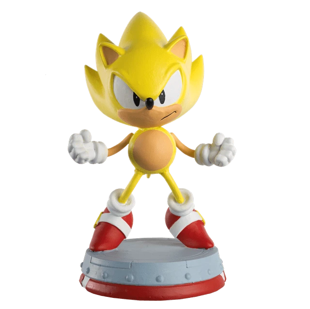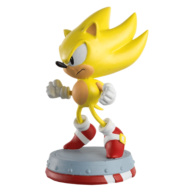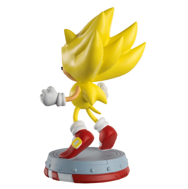 Super Sonic turns from blue to gold after accessing the power of the Chaos Emeralds! Our Super Sonic the Hedgehog Classic figurine captures the character at the beginning of his transformation repeating his pose while leaping into the air. The figurine was hand-painted to capture the bright yellow hue and spikes standing-on-end. He stands over 12.5 cm tall on a Sonic themed base inspired by Tornado Plane from Sonic 2. This Super Sonic figurine comes with a 12-page magazine detailing the character plus a full timeline of SEGA history.
