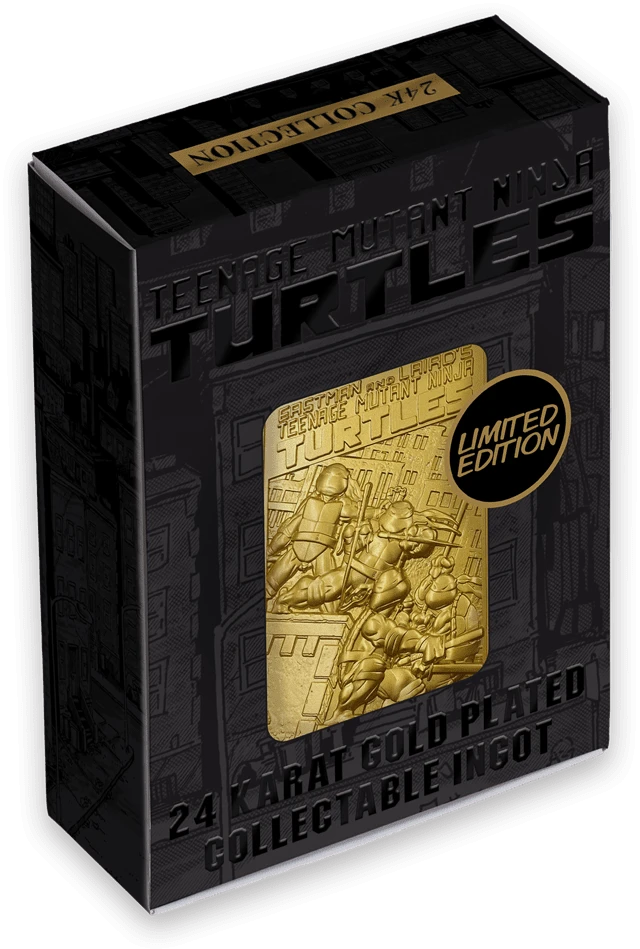 Limited to 5,000 worldwide, this heavily embossed metal replica of the first TMNT comic ever released is individually numbered and 24k gold plated. This collectible piece is supplied with a display stand within its presentation box.