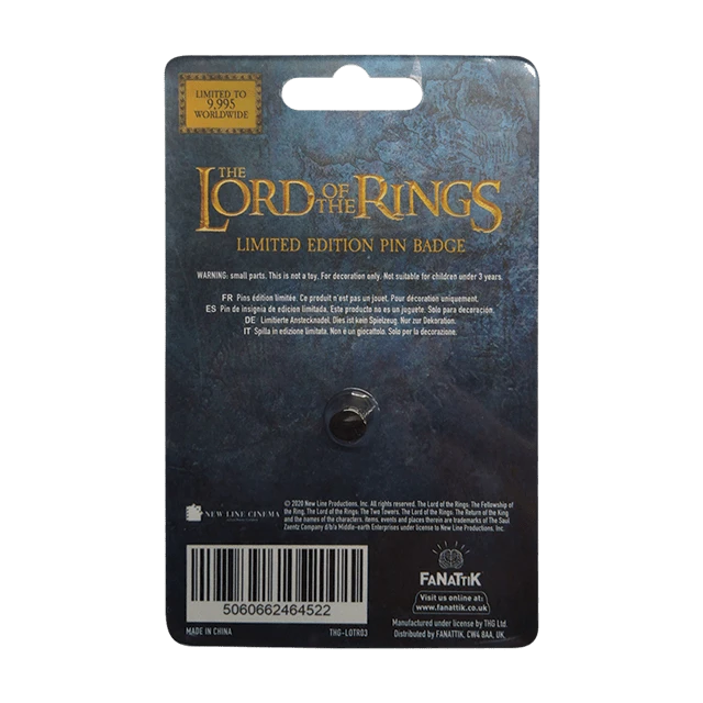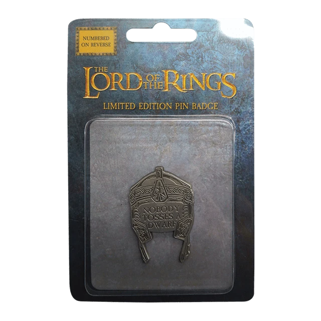 Limited to 9,995 worldwide, this embossed metal pin badge of Gimli’s helmet is limited to 9,995 worldwide and is individually numbered. Featuring one of the funniest quotes from one of the best characters from the films.