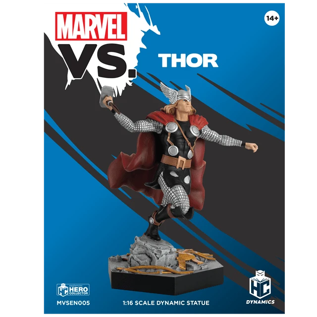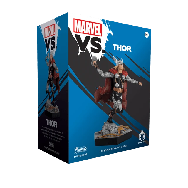 This hand-painted 1:16 scale Thor Marvel Vs. Figurine shows him clad in his modern armour, swinging his magic hammer Mjolnir – ready to clash with his mischievous brother Loki! As a founding member of the Avengers and a champion of the Nine Realms, the God of Thunder’s adventures have pitted him against ice giants, aliens, and above all, his adopted brother Loki. Featuring iconic heroes and villains from the Marvel Comics, each figurine in the Marvel Vs. collection is sculpted in a dynamic fighting pose, atop dramatic scenery! 13.4cm.