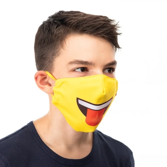 Protective Reusable Washable Unisex face mask. Emoji Masks are designed to “Share your Smile”! Iconic Emoji mouths will break down barriers that a plain mask puts up and spread some cheer! PROTECTIVE ; Against droplets from coughing, sneezing, talk, dust and pollution. REUSABLE & WASHABLE ; For a more sustainable, environmental and economic solution. COMFORTABLE FIT; Adjustable nose strip and ear straps for comfort and to create a good seal around the face. 2 LAYER COTTON; 2 layer tight weave protective Cotton and fabric for comfortable breathing. Woven pocket for PM filters for those most vulnerable. UNISEX fit; 12+year upwards.