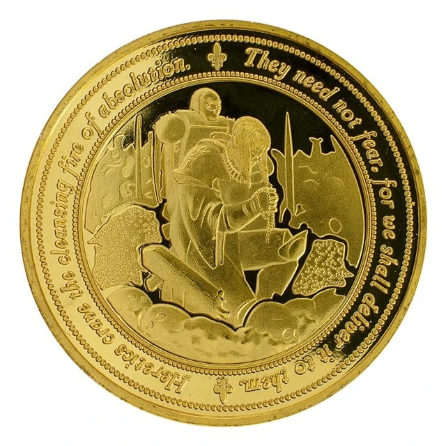 Adepta Sororitas are some of mankind’s most dedicated and disciplined warriors, who devoutly worship and fight for the God-Emperor, now Merchoid are giving you the chance to show your loyalty to the Sisters Of Battle with this limited edition Warhammer 40,000 collectable coin!Limited to 5,000 and individually numbered in roman Numerals, this luxury gold coin features intricate detailing of a Battle Sister of the Order of the Ebon Chalice on the front, along with the Adepta Sororitas insignia depicted on the reverse.