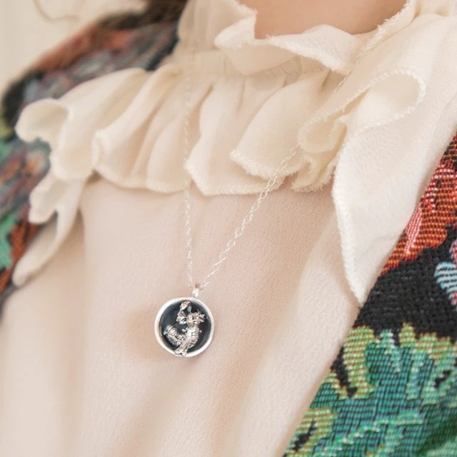 It’s handcrafted in sterling silver; the worm is sitting in a cup and hangs from a fine silver chain measuring 45 cm long. Style it as the playful finish to any outfit. This necklace is definitely a fun gift for any Labyrinth fan who loved the dapper little worm – and, really, who didn’t?. 925 Sterling Silver.