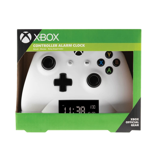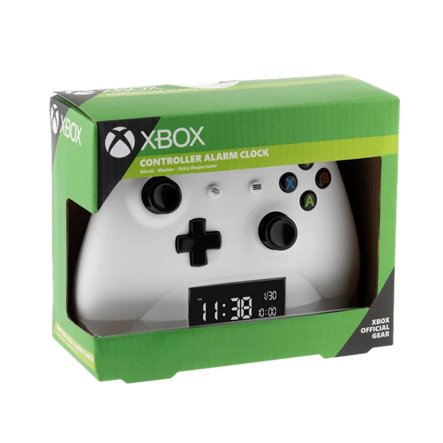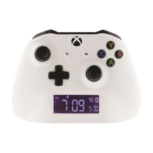 16cm (6.2″) wide white Xbox controller shaped USB powered alarm clock (USB cable included).